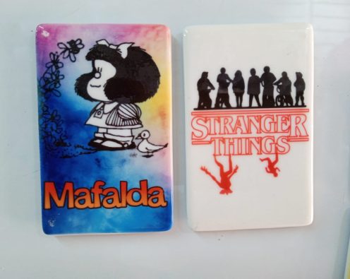 Cerámica magnética 5×8 cm personalizada con la imagen o frase que desees. Ideal para regalar como recuerdo de celebraciones familiares como bautizos y cumpleaños.